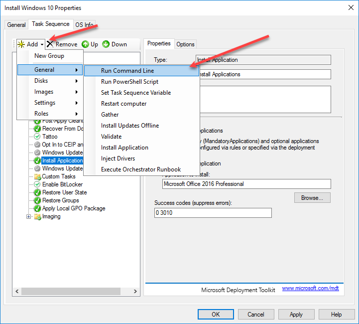 Now go into MDT and Edit your Windows 10 Task Sequence.