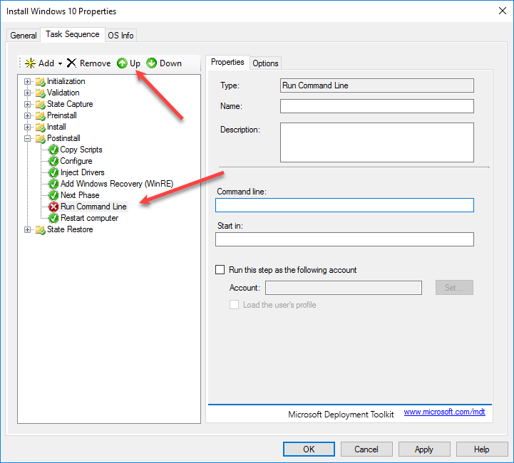 In my Task Sequence I add a new Run Command in the State Restore section: