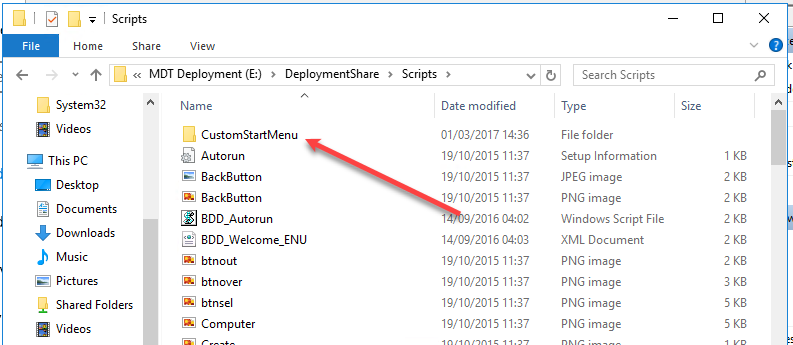 Open up your Deployment Share, and go to the Scripts folder. Create a new folder called ‘CustomStartMenu’