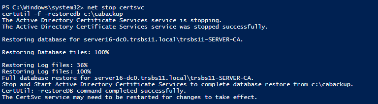 Hi Robert, I have used this once before and it went fine but this time the Active directory Certificate service will not start. I starts and stop saying Error 2 cannot find the specified file.