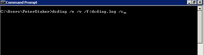 dcdiag /e /v /f:dcdiag.log /c