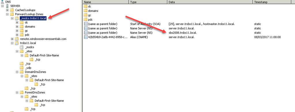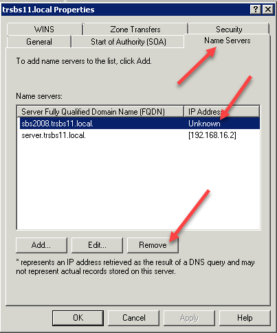 Repeat the process for the zone named _msdcs,yourdomain.local, including checking the name servers tab.