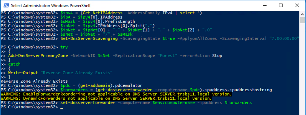 set-dnsserverforwarder -computername $env:computername -ipaddress $forwarders