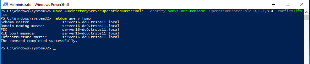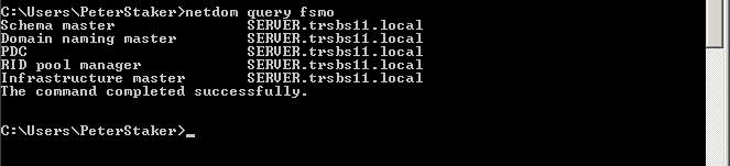 We can also run a quick netdom command to check the current FSMO role holders, this is unlikely to show up anything you didn’t already know, because SBS would have been complaining wildly about it if there was a problem.
