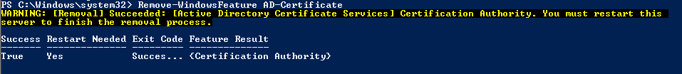 I’ve been migrating an old SBS 2008 to a W12K. I’m on the last step where I need to demote the SBS2008 as DC. After I ran the DCpromo.exe it says that the Certificate Services need to be removed before the Active Directory are removed.