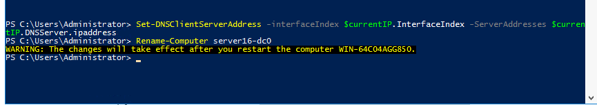 Rename-Computer Server16-DC0