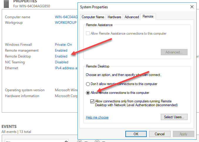 When you get to Server Manager of your Server16 DC Box. go to local server, enable Remote Desktop.