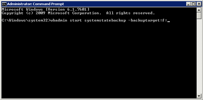 wbadmin start systemstatebackup –backuptarget:f: