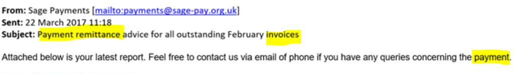 The email came straight into my clients mailbox. Luckily they sent it on to me rather than opening the OneDrive link that came with it.