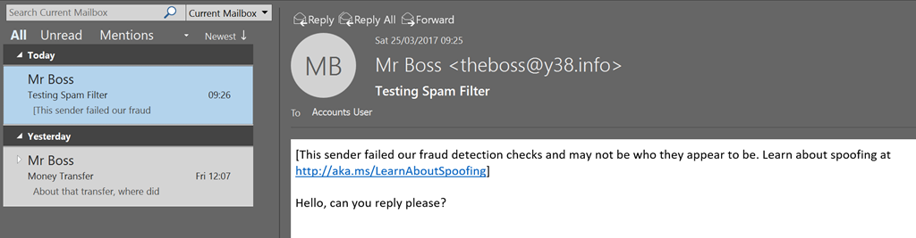 exchange-2014No doubt everyone reading this is familiar with spoofed email. Where an attacker crafts a message to appear as though it comes from a legitimate sender, in the hopes the recipient will reveal personal information or part with their hard earned cash.
