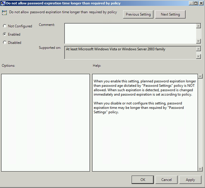 Do Not Allow Password Expiration Time Longer Than Required by Policy