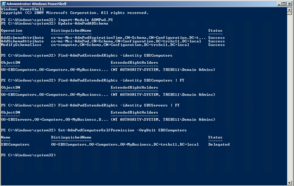 Set-AdmPwdComputerSelfPermission -OrgUnit SBSComputers