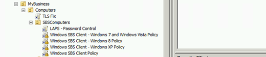 I created a new GPO Called ‘LAPS – Password Control’, which is linked to the SBSComputers OU.