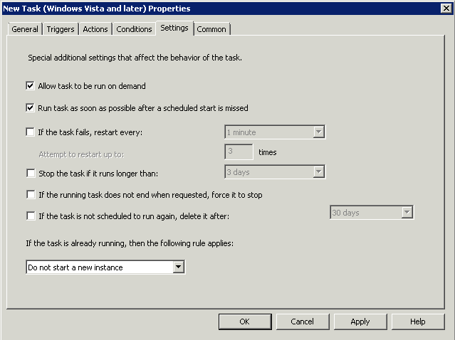 Right click the Details Pane, click New > Scheduled Task (Vista or Later)