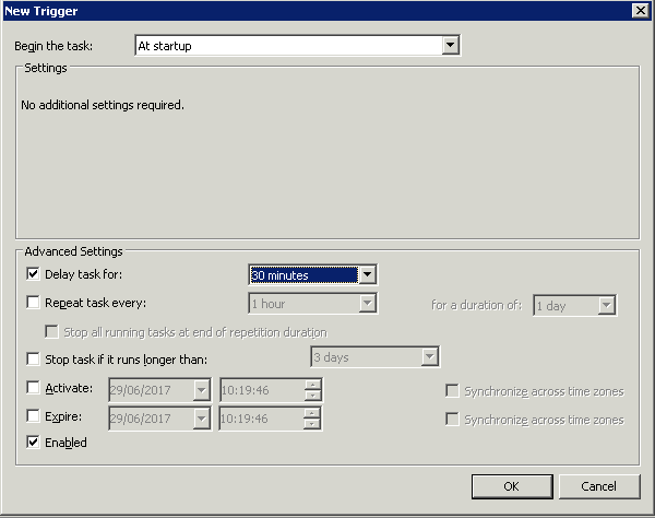I am setting it to run at startup with a small delay.