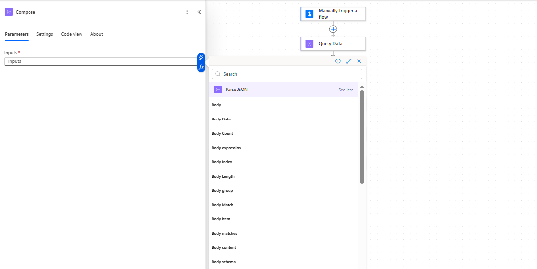 If you then use a Parse JSON data operation, and apply the schema you can start to use the results as dynamic content.