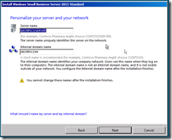 A tip i picked up in the SBS 2008 era, (in this book) was to use a generic name for both the server and the domain. You should have read that book already so i am not going to repeat it, but suffice to say it makes things a lot easier if you ever want to merge with another network.