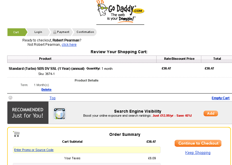 I wont bore you with setting up an account, but i also chose their very kind offer of an SSL certificate as well!
