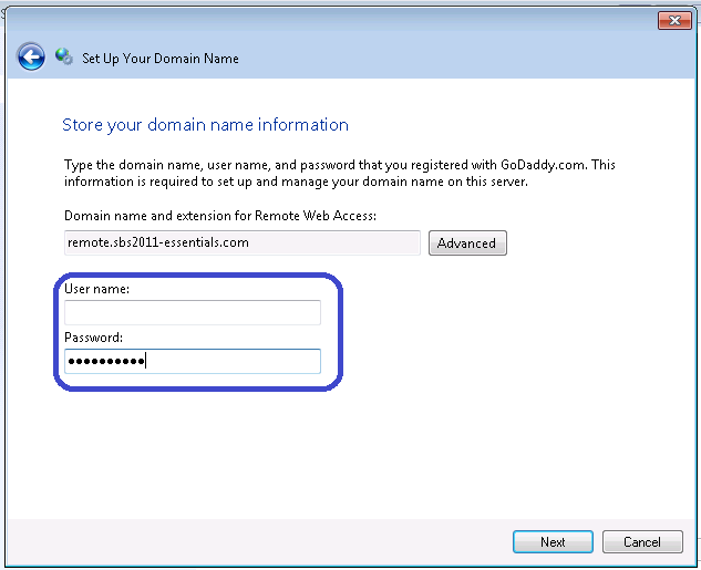 Click Advanced, then fill out the domain name as shown – we need to have our prefix as shown, and you can see below how the domain name for RWA will actually look..