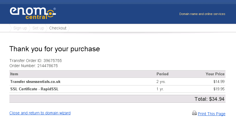 I had problems with the GoDaddy process, so wanted to give eNom a try.