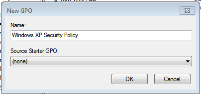 Enter a name for your GPO, you can ignore ‘starter GPO’ click OK.