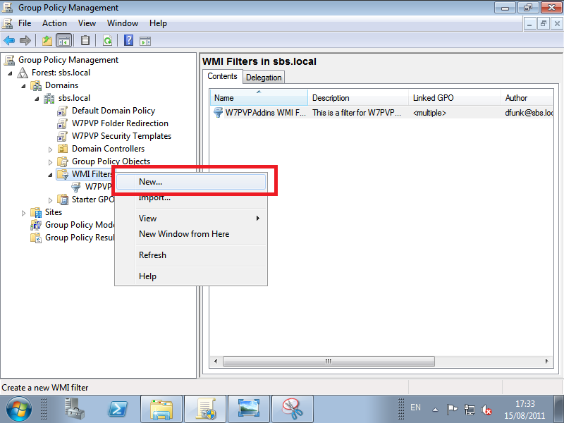 Expanding WMI Filters, you will see the filters you have defined. We only have one so far.