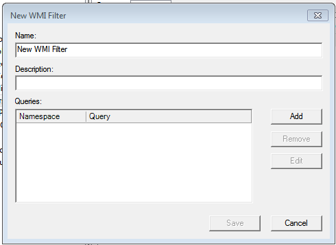 Click on OK to close the WMI Query box, then choose Save to save your new filter.