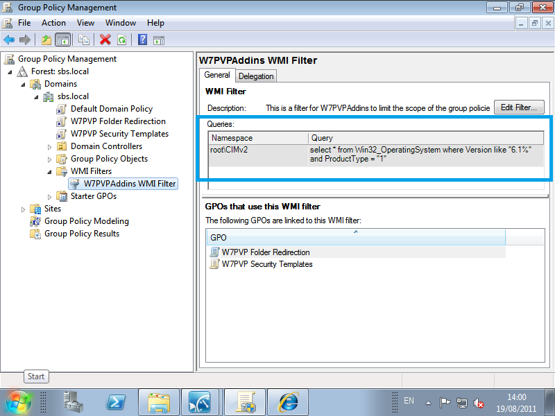 I wanted to cover here a bit more detail on the WMI Filter itself, (which is very simple) and also how to extend the functionality of the W7PP to other client operating systems.